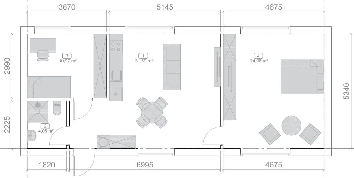 Gemütliches, wirtschaftliches, Haus mit SIP-Rahmen für Wohnzwecke. Das Gebäude ist für eine Familie von 3-4 Personen ausgelegt. Das Haus hat eine Etage.